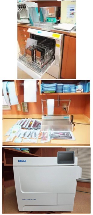 治療に使う器材、タービン等はすべて専用の器械にて洗浄・消毒を行い個別包装した後、医療先進国のヨーロッパ規格をクリアした最新の高圧蒸気滅菌器を使用して滅菌しております。安心して受診していただけます。